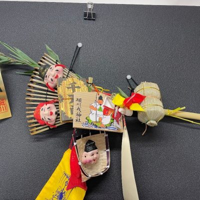 スタッフの日常 新しい福笹 今回は宵戎に福笹をいただき、福を授かってきました。「吉兆」「小宝」と呼ばれる縁起物で飾り付けられた笹がこちらです。熊手に箕、米俵や福袋(銭袋)といかにも… 2024.01.30 661 view